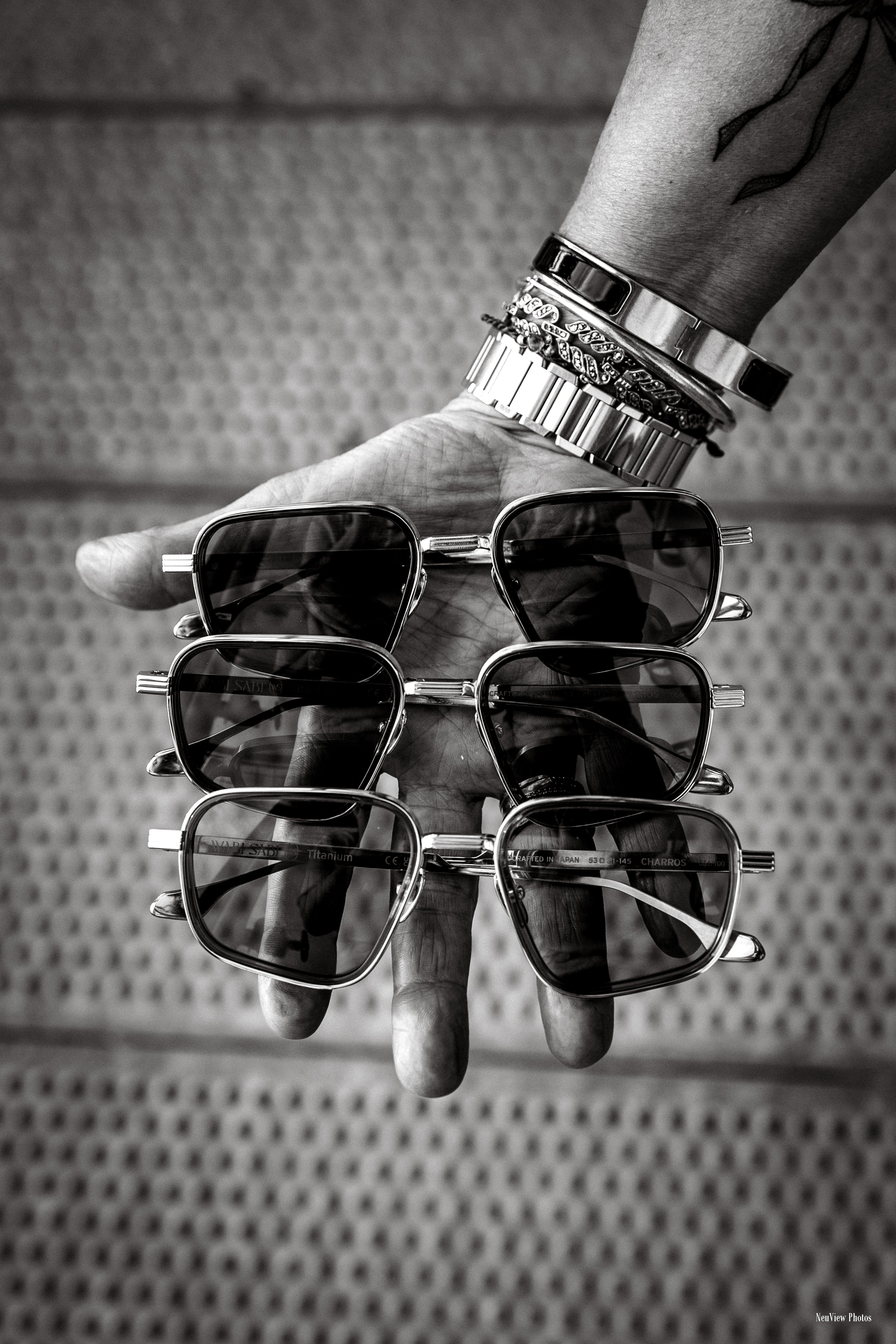 We went to Japan and made some sunglasses. Titanium. Hand-finished. Named for the desert and numbered to a hundred. There are three colors. These are them.